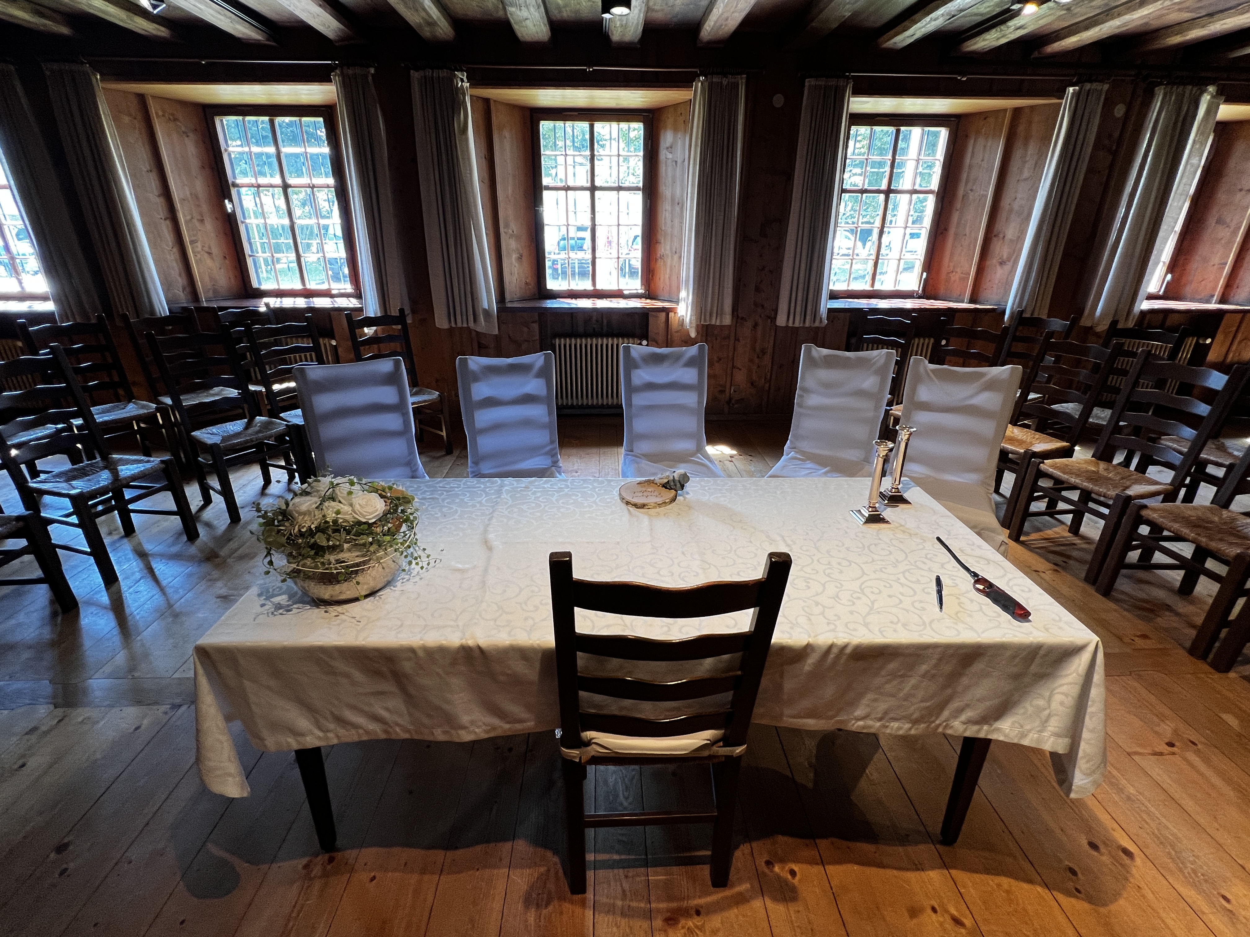 - Quertrauung mit bis zu 60 Gästen möglich (40 sitzend; 20 stehend)