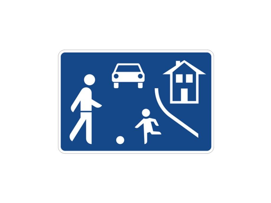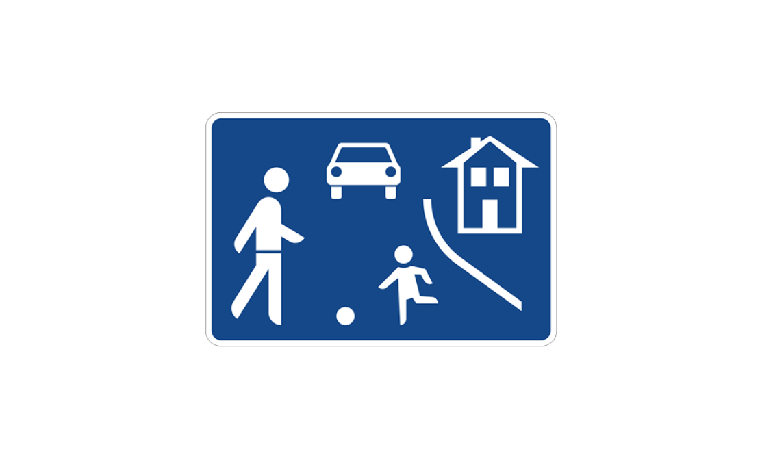 Es gibt keine ausgewiesenen Gehwegbereiche, Fußgänger und Kinder dürfen die Straße in ihrer gesamten Breite nutzen, Kinderspiele – insbesondere Ballspiele – sind auf der gesamten Fahrbahn erlaubt. Die Fahrzeugführer dürfen die Fußgänger und spielenden Kinder weder gefährden noch behindern, wenn nötig müssen sie warten – umgekehrt dürfen Fußgänger und spielende Kinder den Fahrverkehr nicht unnötig behindern, die Fahrbahn ist für Fahrzeuge zeitig zu räumen. Fußgänger, Kinder und Fahrzeugführer sind somit gleichberechtigte Nutzer der Straße.